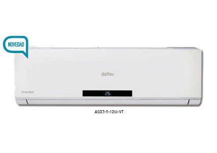 CONJUNTO A.A. ASD09UIVT, INVERTER, clase A, Daitsu, 3NDA8205, frio 2236kcal, calor 2494kcal deshumidificacion+purificacion del aire, fun.sleep+timer+turbo+reset. Blanco