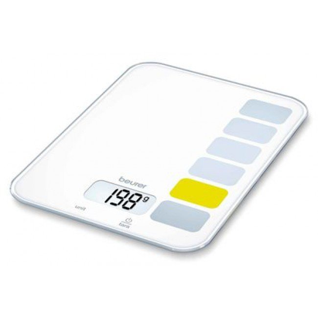 Balanza cocina Beurer KS19, 1gr a 5 Kg, pantalla lcd, fun.tara, boton táctil, vidrio de seguridad. Blanco