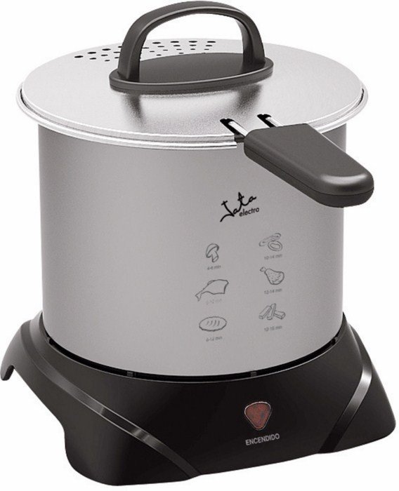 Freidora Jata FR276, 900w, 1L, antiadherente, metálica, tapa con asas, cestillo con mango abatible, facil limpieza.