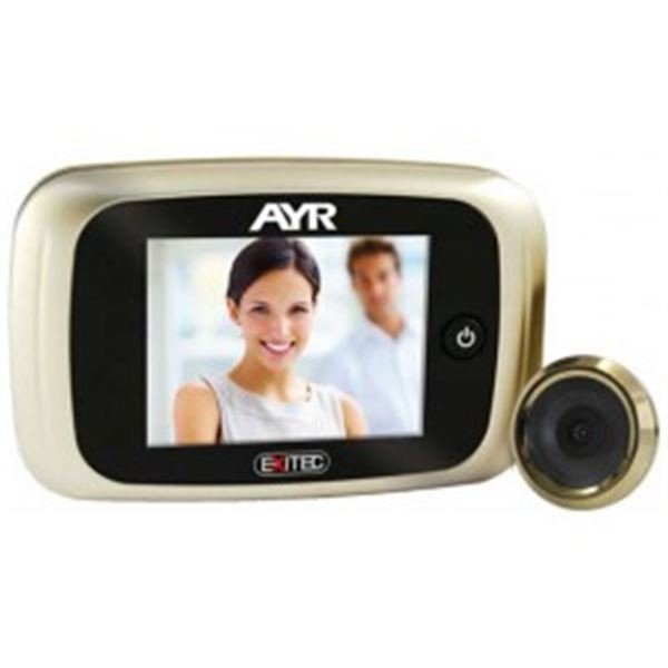 Mirilla digital de puerta Exitec 753LATONADO, Pantalla LCD 3,5" TFT, Resolucion QVGA 320x240 pixels, sensor 0,3Mpx CMOS, Angulo 110º. Adaptable a agujeros mirilla de 14 a 22mm. Latonado (marco pantalla niquel mate)