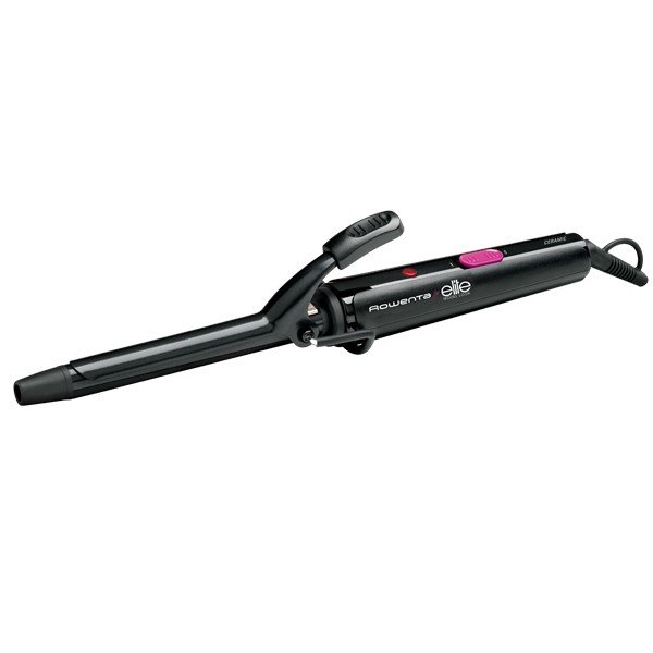 Moldeador pelo Rowenta CF2112, BASIC ELITE, recubrimiento ceramic tourmaline, tenacillas rizadoras lisas para rizos pequeños, 16mm, temp. 230º, punta de toque frio, palanca para soltar el rizo, cable giratorio profesional 360º. Negro.
