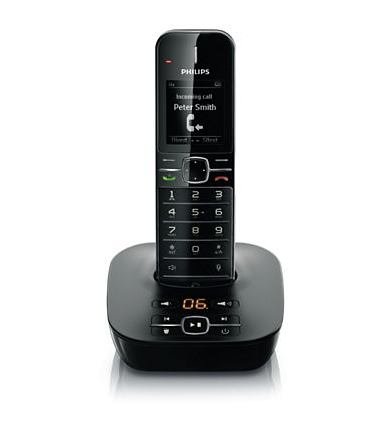Telefono inalambrico Philips CD4801BES, identificador de llamada entrante. Pantalla retroiluminada en blanco 2",autonomia 300 horas en stanby, 18 horas conversación, agenda de 100 nombres, bateria AAA NimH recargable Negro.